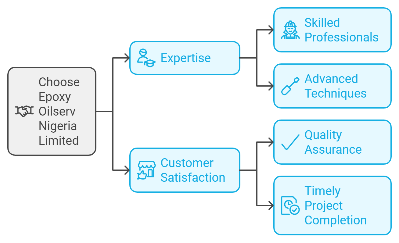 Epoxy Oilserv Nigeria Limited stands out due to our extensive experience, high-quality materials, and commitment to customer satisfaction. Our team of certified professionals uses advanced techniques and tools to deliver exceptional results, and we prioritize transparent communication and tailored solutions for every project.